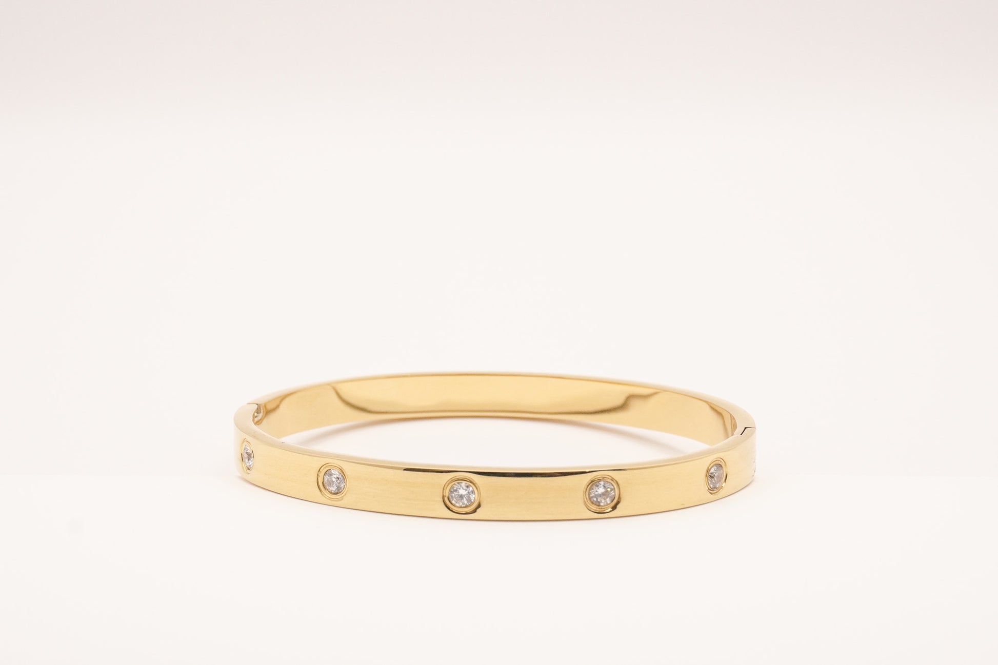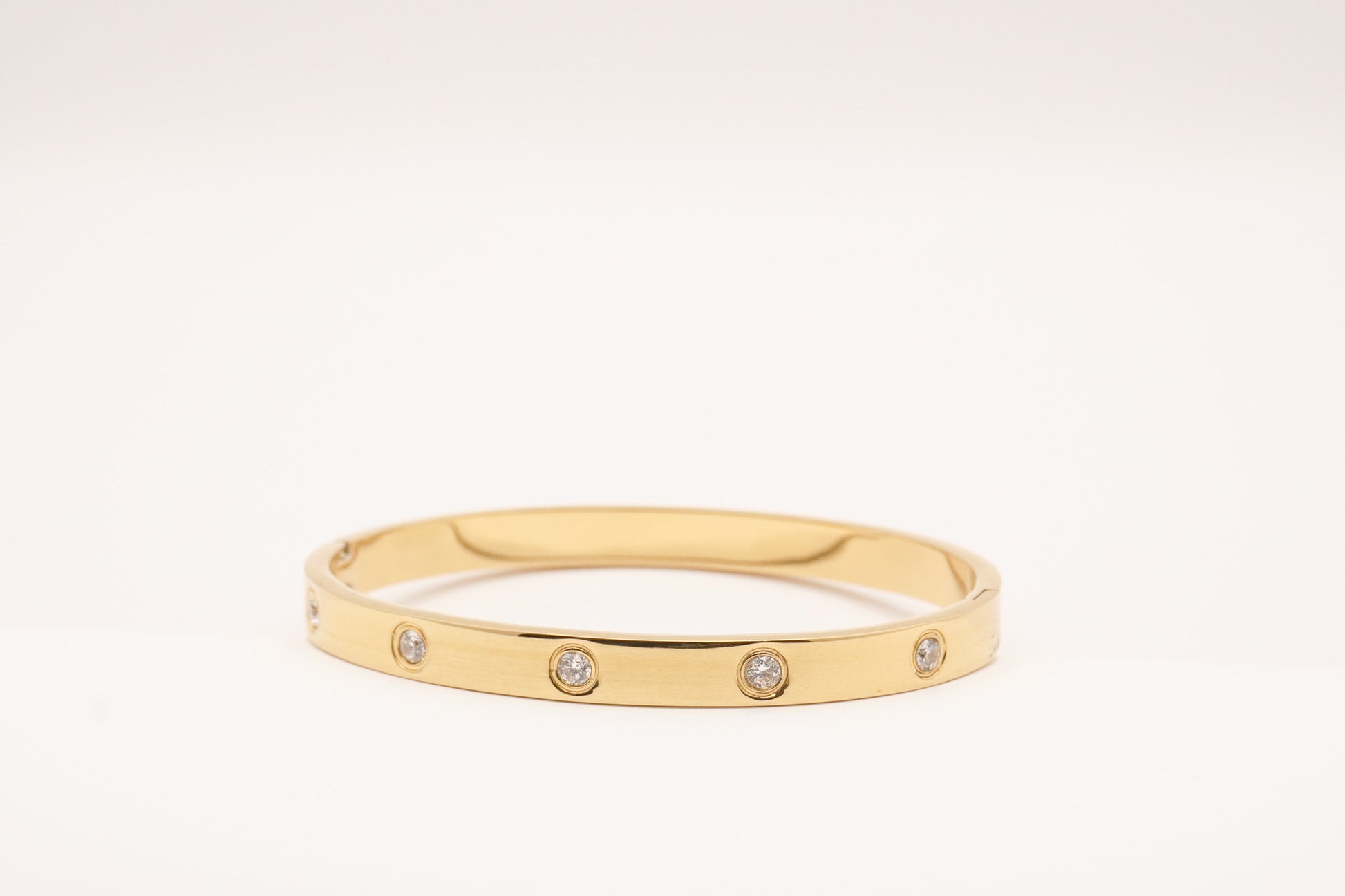 A refined 18K gold-plated premium stainless steel bracelet adorned with sparkling zircon stones. Designed for elegance and everyday wear.