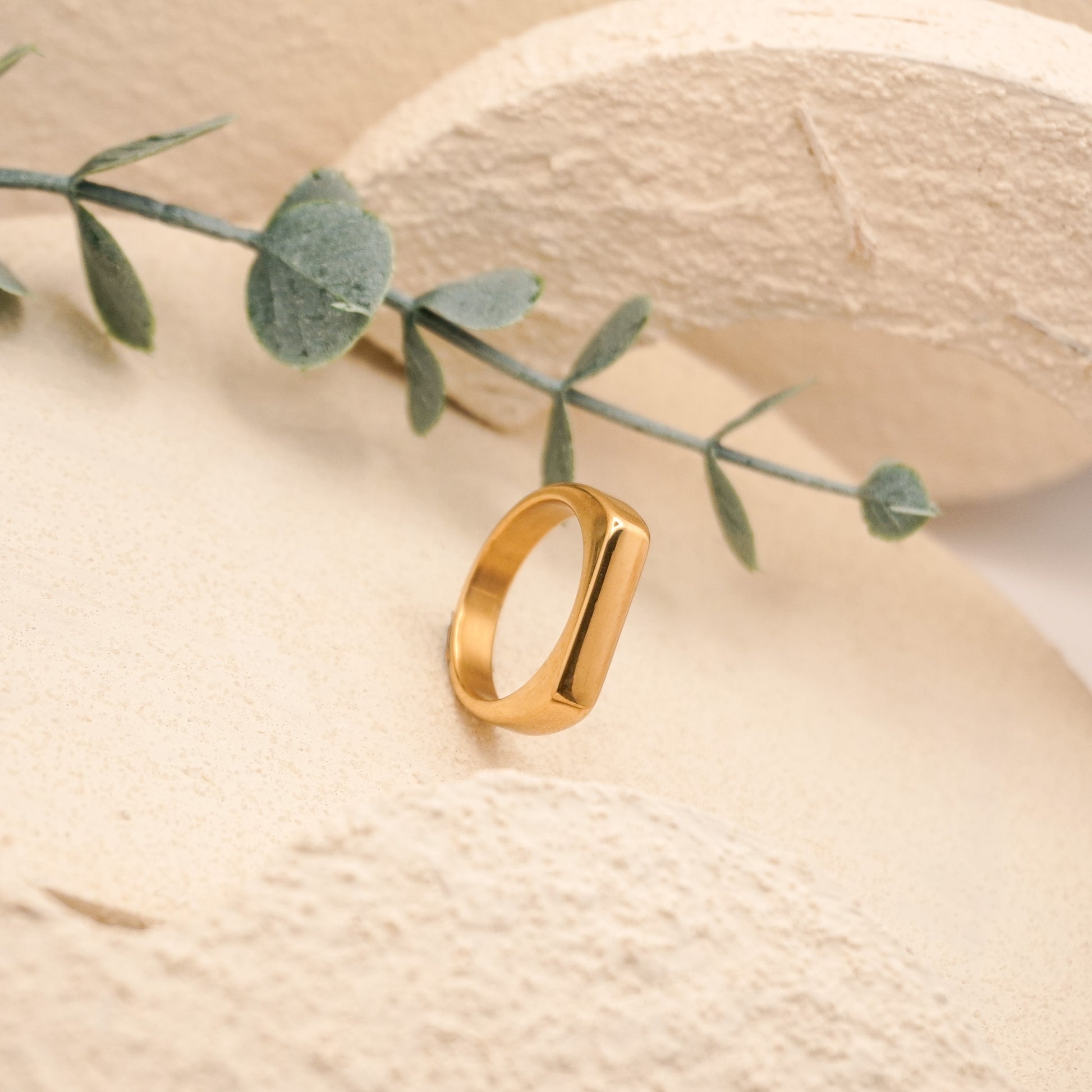 This modern and minimalist ring is crafted from stainless steel and finished with 18k gold plating for a refined and timeless look. the smooth surface is ideal for precision laser engraving, allowing you to personalize it with initials, dates, or meaningful words.